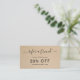 Simple business referral card featuring "refer a friend" with swashes in an elegant handwritten script font over a rustic brown paper background. The backside has the referral form and your contact information. This feminine design is great for a handmade craft business.