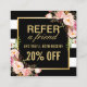Refer a Friend Floral Gold Black White Referral Card.