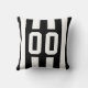 Easy to edit striped referee jersey design throw pillow. In classic black with white stripes. You can add your own choice of number to the back.