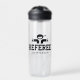 Personalised referee water bottle for official sports team supervision. Handy for soccer, basketball, softball, baseball, lacross, water polo, football, rugby, volleyball, handball, tennis and other sports that need an umpire. Great for High School games, college leagues and tournament matches. Personalise with custom name, team, trainer, coach, school etc. Plastic water bottles available in 20 and 25 ounce size.