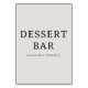This elegant tabletop sign features a minimalist design with bold typography, perfect for adding a touch of sophistication to your wedding dessert bar. The clean and simple layout, set against a soft beige background, creates an inviting atmosphere that encourages guests to indulge in the sweet treats. With its modern and timeless appeal, this sign is ideal for any contemporary or classic wedding theme, ensuring your dessert table stands out beautifully while maintaining a welcoming vibe.