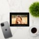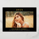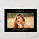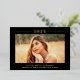 Celebrate your graduate with this refined graduation party invitation featuring a beautifully framed senior portrait on black with the class year in gold foil and elegant horizontal line accents. The back presents open house event details in classic black serif typography on white. All text is fully customisable, including the graduate's name, school, class year, and event details.