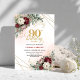 Refined Burgundy Flowers Eucalyptus 90th Birthday Invitation