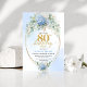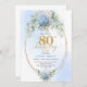 Refined Chic Dusty Blue Floral Gold 80th Birthday Invitation