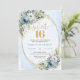 Celebrate a milestone moment with this elegant Sweet Sixteen invitation, featuring a refined watercolor design of dusty blue florals blended with soft white flowers and fresh eucalyptus greenery. Framed by a shimmering gold glitter border and paired with graceful script lettering, this invitation sets a sophisticated tone for a truly unforgettable Sweet Sixteen, Sweet 16th, or 16th birthday celebration.