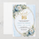 Refined Dusty Blue Greenery Sweet Sixteen Invites