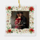 Refined and Exquisite Floral Christmas Frame Holiday Ceramic Ornaments for Growing Families with 2 Family Photo.