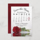 These beautiful Save the Date cards feature a gorgeous photo of a single long stemmed red rose reflecting in water with waves and ripples. The card includes a calendar with your wedding date circled in a red heart. Beautiful romantic design.