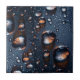 This image captures a close-up view of multiple raindrops on a dark, reflective surface. Each raindrop acts like a lens, reflecting and distorting the image of what appears to be a warm-toned street light or sunset. The contrast between the sharp clarity of the raindrops and the blurred background creates a sense of depth and intrigue. The overall mood is one of tranquillity and contemplation, making it an appealing choice for decorative tiles that could add an artistic touch to any space.