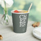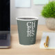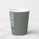 This modern wedding set has a warm, personal feel and many pieces feature an abstract, watercolor design resembling reflections on water. This coordinating paper cup has a solid color background of dark sage green, striking typography of 'Cheers' along with your names and wedding date. Search ID774 to see the complete set of matching products and additional color options for this design.