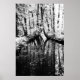 Reflective Contrast - A black and white photograph of curved trees growing out over a still stream with heavy contrasted reflections in the water