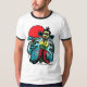 Great T-Shirt, looks cool, good thickness and fits well. Slightly lighter than expected, not pitch black, more of a faded black, but still looks good.