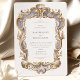 Step into a world of regal elegance with this Baroque Flourish Wedding Invitation Suite, designed for those who cherish classical beauty. The front and back of the invitation are encased in a sumptuous frame, drenched in hues of gold, cream, and a serene duo of sky and powder blues, which together evoke the tranquil beauty of a rococo painting. The frame itself is a masterpiece, with swirls and flourishes that reflect the grandeur of Baroque architecture and the ornate detail of period tapestries. Featuring a customisable monogram set within an aristocratic crest, this suite is a tribute to the time-honoured traditions of love and matrimony, promising to enchant your guests with its timeless sophistication.