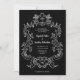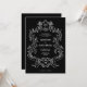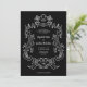This elegant and luxe wedding invitation features a white, vintage line art frame with ornate baroque style on a dark black background. This design is also perfect for a gothic style wedding. Modern script calligraphy and classic text, along with your initials or monogram, make this a classy yet up-to-date contemporary choice.