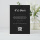 These simple and elegant dark black wedding guest detail information cards feature modern script calligraphy and classic white text for a classy yet up-to-date contemporary choice for your gothic or traditional wedding. You can use these cards for driving directions, reception or transportation information, hotel or accommodations information, and any other wedding details you need your guests to know. Also features a scannable QR code.