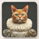 Funny ginger cat dressed in vintage clothes and ruff collar.