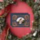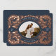 This photo save the date features intricate hand-drawn ornamental foliage that surrounds the text and photo.