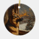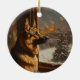 Ceramic ornament featuring a regal German Shepherd posed beside a Christmas tree in a classic oil painting style, bringing elegance and holiday warmth to your decor.