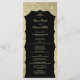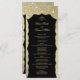 This wedding program design combines sophistication with timeless elegance. The front side presents the couple’s names highlighted within an ornate golden damask frame, set against a deep black background. On the reverse side, the complete wedding program is displayed on a shimmering gold panel bordered with matching damask flourishes. All text areas are fully editable, making this card perfect for formal, elegant, and memorable wedding celebrations.