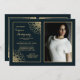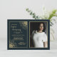 A classy black invitation with two gold frames. One decorative frame holds your party's information and the other your favourite photo.