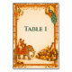 Elegant 5x7 table number card featuring a luxury gold elephant and floral motifs on a rich saffron background. Double-sided with an emerald green mandala design. Perfect for royal-themed Indian weddings and Sangeets.