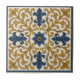 Elevate your decor with this sophisticated decorative tile. Featuring a majestic design of intertwining yellow gold scrollwork and classic blue fleur-de-lis motifs, centred around a charming blue floral medallion. Framed by a rich blue border, this tile adds a touch of timeless elegance and royal flair to any space. Inspired by classic Azulejo or Italian Renaissance artistry. This piece showcases an intricate symmetrical pattern of luxurious yellow gold acanthus leaves and prominent cobalt blue fleur-de-lis symbols, all converging around a delicate central blue flower. The bold blue outer border beautifully frames the design, making it an ideal choice for creating magnificent backsplashes, accent walls, or adding a rich, historical touch to fireplace surrounds, floors, and entryways. A true statement of refined taste. The central blue blossom provides a focal point, while the deep blue border enhances the overall design. Perfect for those seeking to create an atmosphere of classic luxury and sophisticated charm in kitchens, bathrooms, or any area deserving of an artistic focal point.