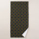 An African inspired geometric pattern towel set in golden yellow with blue on black to add a cool tribal element to any bathroom.
