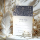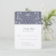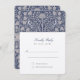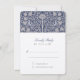 This RSVP wedding invitation card is a masterpiece of classic elegance and regal charm. Against a backdrop of navy blue, a symphony of cream botanicals and florals dances gracefully, creating an ornate Victorian-inspired pattern. Two stately love birds, each with a monogram letter, stand as symbols of love and commitment at the centre of this lush garden scene. The design's opulent detail is reminiscent of historical tapestries and invites guests to partake in the grandeur of your upcoming celebration. The reverse side of the card maintains the theme of refined simplicity, providing guests with a prompt response format set in a sophisticated typeface that echoes the design's classic roots.