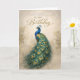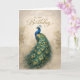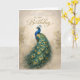 A luxurious birthday design showcasing a majestic peacock with flowing, jewel-toned tail feathers in rich shades of teal, sapphire, emerald, and soft gold. Set against a subtle parchment-style background with gentle botanical accents, the elegant “Happy Birthday” script adds a refined, timeless touch. This artwork radiates sophistication and grace, making it perfect for milestone birthdays, upscale celebrations, or anyone who appreciates classic beauty and ornamental detail.