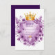 This exquisite wedding invitation template features a royal golden crown adorned with amethyst jewels, nestled above a heraldic shield framed in gold. Surrounding the design are lush lavender and violet peonies, creating a luxurious, vintage floral motif. Perfect for romantic, royal-themed weddings or elegant celebrations with a touch of nobility and floral charm. The blank shield provides space for custom names, dates, or messages.