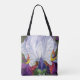 This tote bag transforms a simple accessory into a classic botanical illustration. The light and deep purple iris' details are so vivid and intricate that it bridges the gap between reality and illustration. The artwork captures the iris in a moment of full splendour, with petals unfurling gracefully in a delicate dance of light lilac and deep purple hues. The transition of colours is seamless, highlighting the natural elegance and depth of the iris.