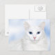Long haired, possibly Turkish Angora, blue eyed white cat photo postcard
