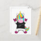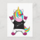 Kunterbuntes Einhorn mit Rainbow-Mähne, Gitarrensilhouette auf schwarzem Shirt. Verspielte Pose, ideal für junge Musikliebhaber, farbige Pop-Ästhetik, vielseitig für Shirts und Hoodies.