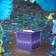 Elegant wedding favour box done in a regency blue damask background. The top of the box has a decorative silvery grey and white text plaque, with regency blue custom text ready to personalise. Lovely digital graphics of a silver tone floral jewel like garland, runs around the middle of the box. Lovely little gift box for candies and anything else you want to give your guests.