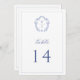 Regency Blue Monogram Crest Wedding Table Number