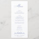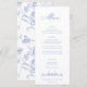 Vintage Regency Blue Floral, wedding menu. Vintage inspired elegant Chinoiserie Style garden floral pattern backing and coordinating blue typography.