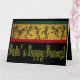 a photo of original needlework reggae dancers by sheri j kennedy, used with artist's permission, with "doin' a happy dance!" in matching colour funky script on the front, with "'cuz i heard it's your birthday!" in the same script inside. lively up yourself and their birthday with this unique card