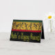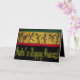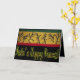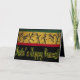 a photo of original needlework reggae dancers by sheri j kennedy, used with artist's permission, with "doin' a happy dance!" in matching color funky script on the front, with a large "happy birthday!" and "'cuz i heard it's your birthday!" in the same script inside. lively up yourself and their birthday!