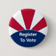 This register to vote button encourages your fellow citizens to vote. It is red, white, and blue and has a sunburst pattern. The words register to vote appear in white text on the "sun" part of the design.