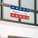 You can encourage voter registration in your community. The top is a blue field that has five white stars. The middle stripe is white and says 'Register to Vote' in dark blue text. The bottom stripe is red with five white stars.