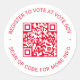 Register to vote scannable QR Code red and white Classic Round Sticker