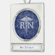 Registered Nurse RN Caduceus on Navy Blue Camo Silver Plated Banner Ornament