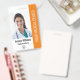 Easily personalise this professional blue medical employee photo ID orange badge with your custom details.