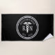 Registered Nurse RN Graduation Custom Year Beach Towel makes a great gift idea for a nursing school graduate! Designed with white medical caduceus symbol and "RN" on black customisable background colour. Perfect idea to take on vacation and swimming along with keepsake.