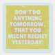 A funny typography design about regrets, this confuses past and present tense and does not make sense. Up to anything tomorrow that you might regret yesterday.