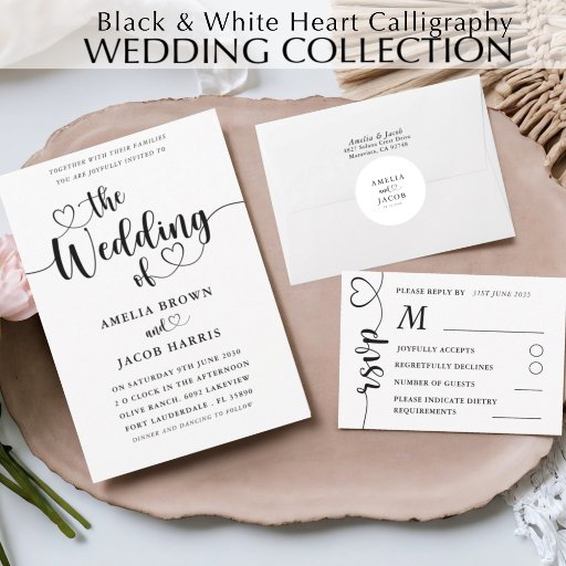 Modern and sophisticated design featuring black calligraphy on a withe background. A cool, simple and easy to customise with your own details.