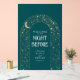 Enhance your rehearsal dinner with an elegant teal and gold celestial welcome sign featuring moon, stars, planet and a shooting star.