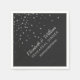 Create your own modern, black and silver confetti wedding rehearsal dinner paper napkins- Black background with faux silver confetti foil dots scattered across the top half. Couple's names in grey script. Reads 'REHEARSAL DINNER' and custom hashtag for your instagram or other photo sharing website below in matching grey silver colour, modern lettering. Modern, personalised wedding rehearsal dinner napkins. Matches virtually any wedding theme or elegant wedding styles, or black and silver wedding decor. Matching modern silver wedding supplies and other paper party napkin styles are in our Zazzle.com/angela65 shop