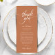 Share the love and show your appreciation to your guests, when they sit down at their seat and read this personalised charming thank you place card. It's a wonderful way to kick off your special day celebration! This card is sure to set the tone for an unforgettable event. The thank you card features modern design, timeless terracotta copper brown theme, adding a touch of timeless elegance to your celebration.