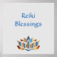 Reiki blessings white, blue and gold lotus flower design poster. Theme - healing energy therapy healer master "wall art" decor picture